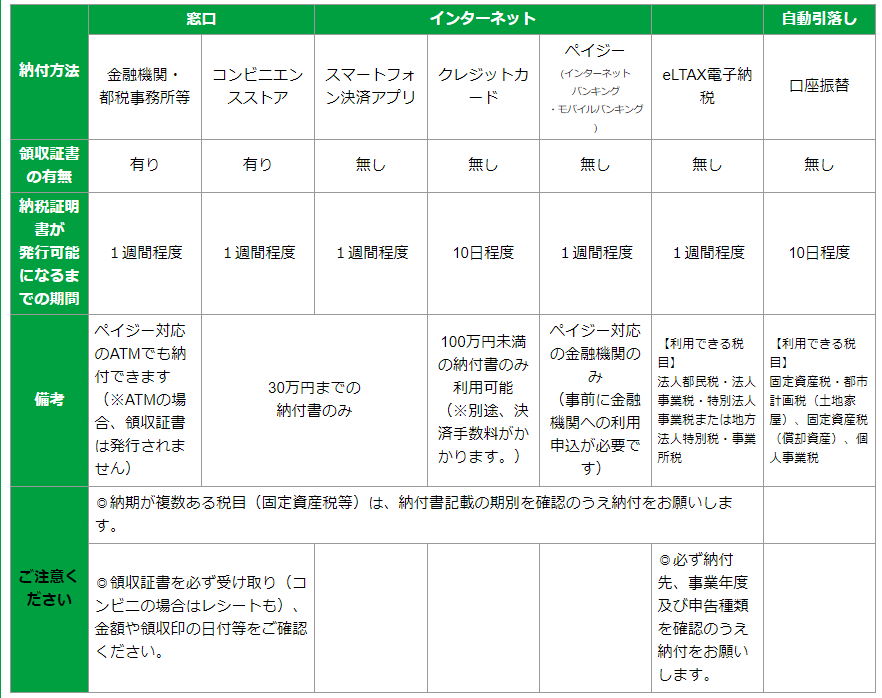 そして固定資産税(都税)には以下のような支払方法があります。(※都のWebより引用)