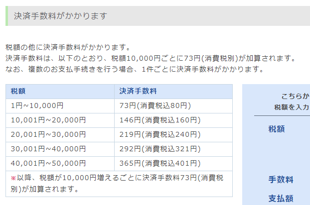 「1万円ごとに73円」と謎の表現がされていますが、要するに1万円ごとに税込みで0.8%かかります